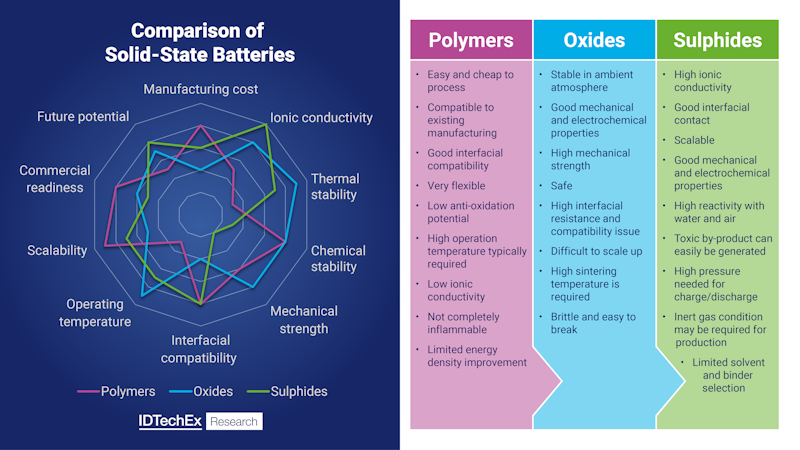The IDTechEx report "Solid‑State Batteries 2026-2036: Technology, Forecasts, Players" provides the broader context needed to act. It benchmarks sulfide, oxide, and polymer pathways, details system‑level integration issues like pressure management and thermal design, maps manufacturing bottlenecks and cost‑down levers, and profiles the players, partnerships, and regional strategies that could reshape today's battery supply chain.