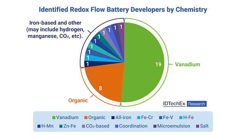 Redox flow battery technology developers by chemistry. Source: IDTechEx.